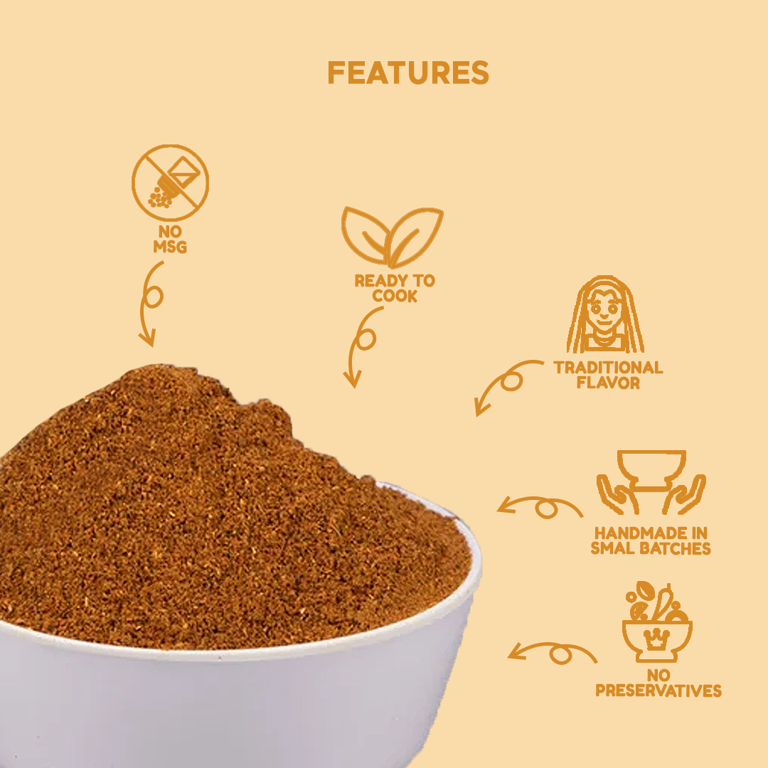 (For serving of 2) Sprinkle 1 given spoon of masala while preparing your veg/ non-veg dishes.
